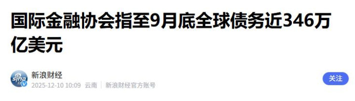 2025年底,全球债务总额已经摸到346万亿美元这个天文数字。